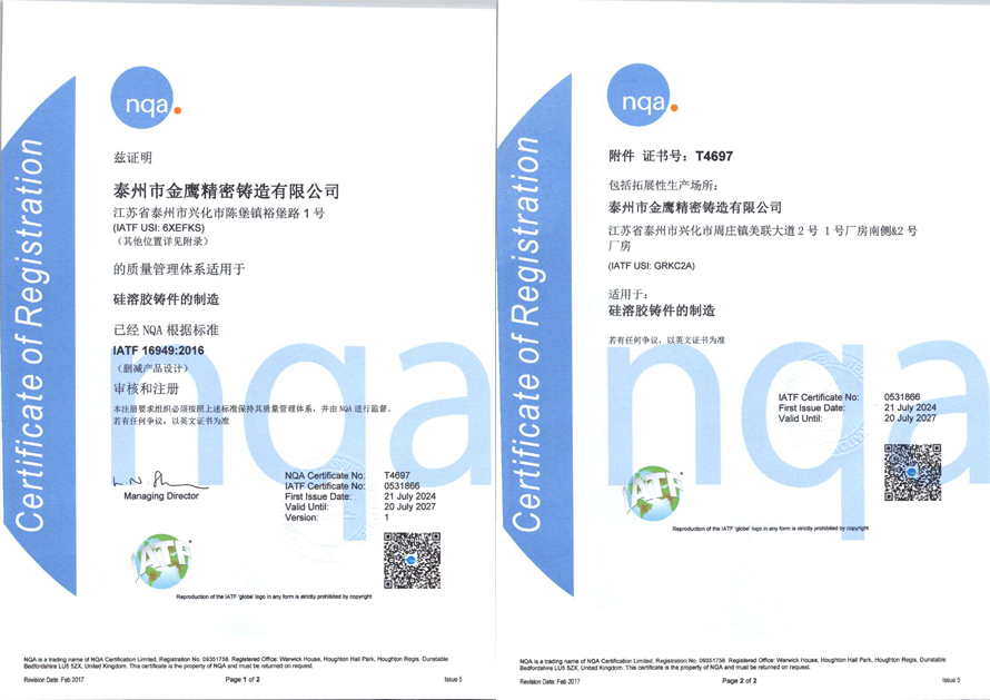 泰州市金鷹精密鑄造有限公司能源證書附件